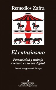 Esta segunda reseña gira, tal como se decía en el anterior Post, sobre el reciente libro de Remedios Zafra (El entusiasmo. Precariedad y trabajo creativo en la era digital) que ha obtenido el Premio Anagrama de Ensayo de 2017. La frescura del trabajo no es solo temporal sino también de enfoque. En este sugerente y lúcido ensayo la autora se enfrenta a otra cara de la digitalización y, sobre todo, a otras consecuencias. Tomando como referencia un tema aparentemente acotado (el trabajo creativo en la era digital y su marcada precarización), el libro desborda constantemente esos estrechos márgenes y nos sumerge en un relato-ensayo con incursiones estético-filosóficas plagado de ideas-fuerza y no exento de puntos críticos a las conexiones entre digitalización y neoliberalismo, así como de la feminización que la precariedad del trabajo digital adquiere, lo que proyecta en la figura de Sibila, presente en buena parte del discurso. Tal como dice la autora, “Sibila es entusiasta y trabajadora. Su nombre es Cristina, María, Ana, Inés, Silvia, Laura …, incluso cuando es Jordi o Manuel, siempre está feminizada”. Es el hilo conductor que mueve la obra, ciertamente muy acabada.
